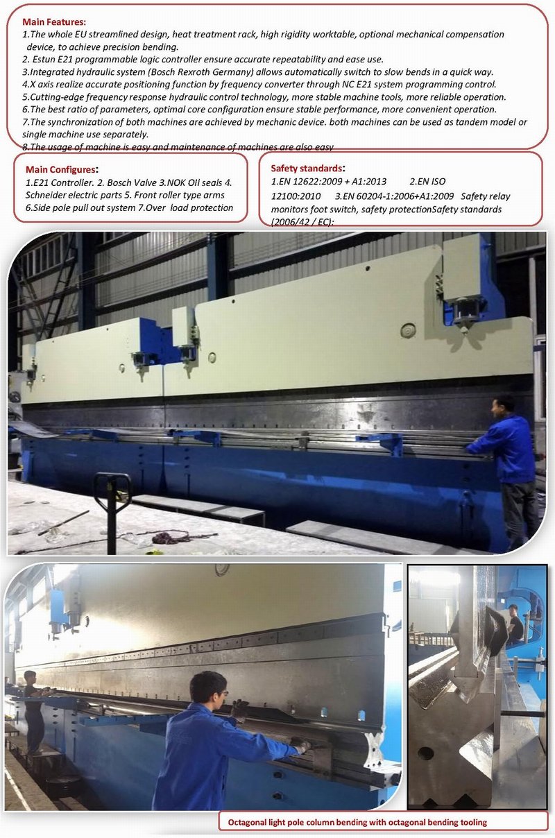 2-WC67Y 2-HPB TANDEM STANDARD HYDRAULIC PRESS BRAKE: Light pole bending machine to bend sheet plate into light pole column