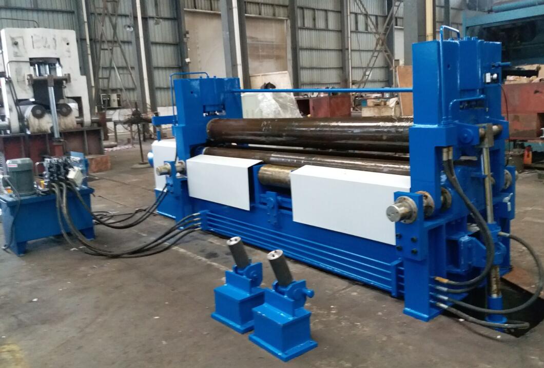 上辊万能式卷板机属于液压型三辊卷板机,用于常温状态下将板材卷成圆筒形、圆弧形、圆锥形。